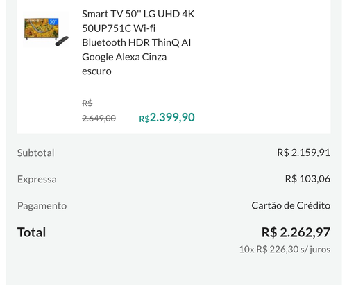 Baita TV boa, comprei a 1 mês por 2080 a vista no Submarino.