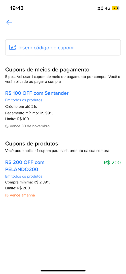 Além de adicionar o cupom, consegue mais 100 de desconto com o cartão Santander.