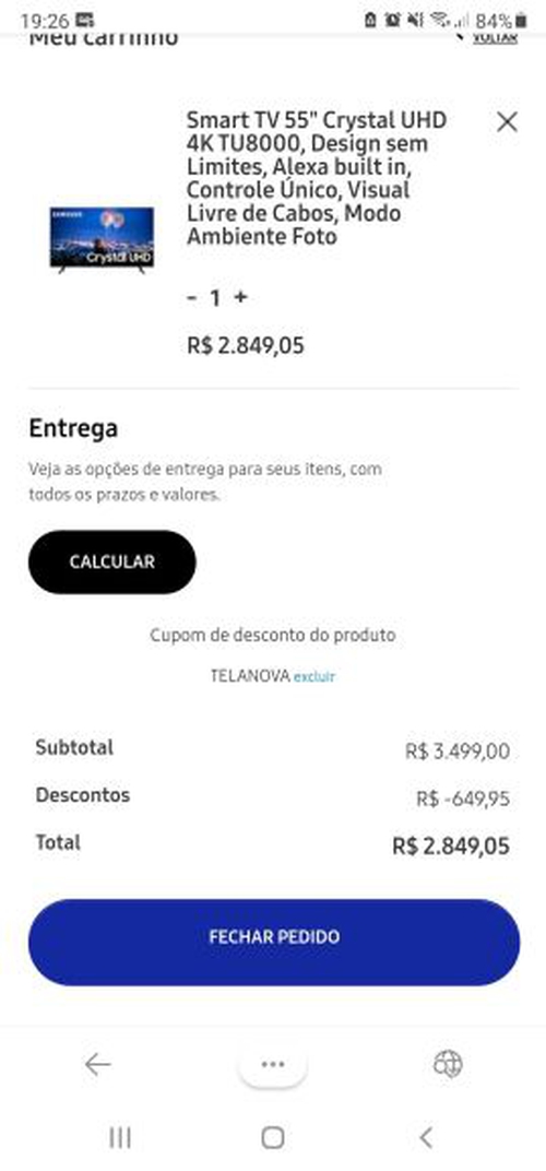 Smart TV 55" Crystal UHD 4K TU8000, Design sem Limites, Alexa built in | R$2849