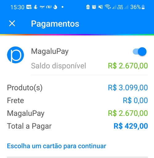 Depositei o valor no Magalupay, inseri o cupom de desconto, mas só chega a R$3099. Alguém sabe como me ajudar a chegar nesse valor? 😥