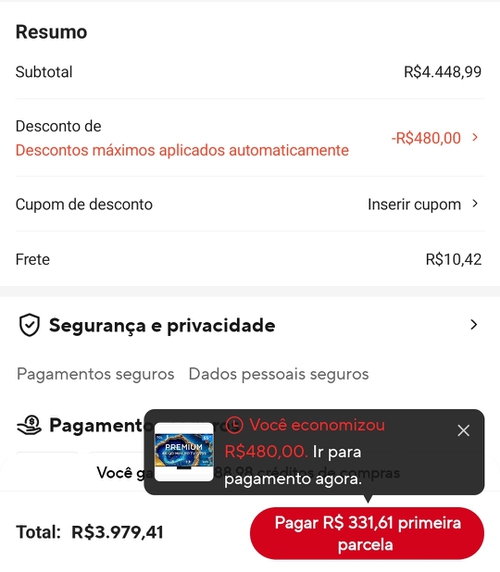 Tem uns cupons que prestaram, um bra280 foi, mas fica 200 mais caro. Fica 4185.