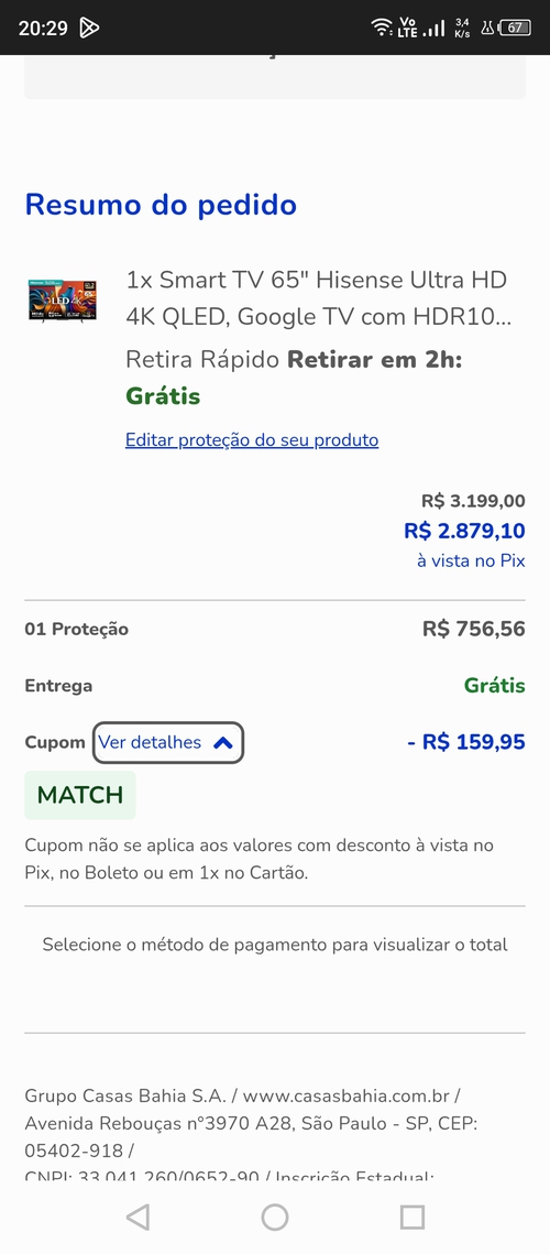 MUITO mais negócio a TCL C655 que postaram aqui tbm por R$100 a mais.