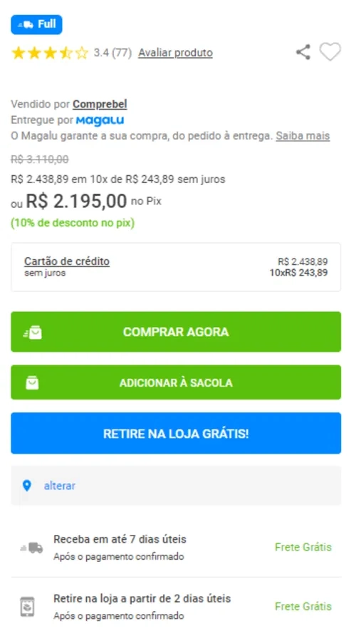 Precinhooo R$ 2.195,00 À vista no PIX ou parcelado no Cartão em até 10x de R$ 243,89