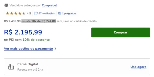 Precinhoooo R$ 2.195,99 no PIX ou em até 10x de R$ 244,00