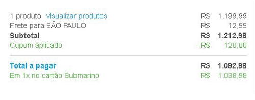 Cupom: TVCOM10 | Forma de Pagamento: em até 8x sem juros no cartão de crédito ou 15x sem juros no Cartão Sub