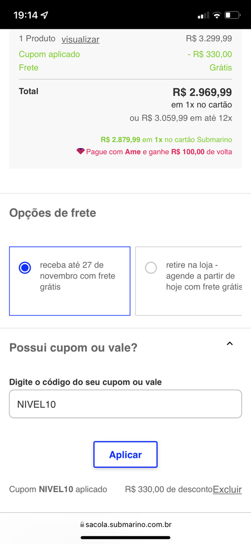 A vista 100 off + cupom Nivel10 330 off + 100 de volta pagando com ame.. não chegou nesse valor aí não