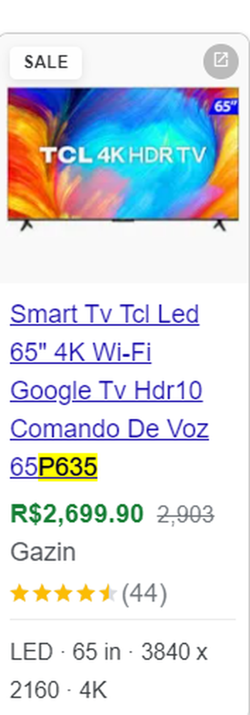 Transforme sua sala em um verdadeiro cinema com a Smart TV LED 65" 4K UHD TCL P635. Experimente o melhor do entretenimento com uma qualidade de imagem incomparável e recursos inteligentes para facilitar sua vida.
