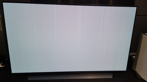 F, família, a minha chegou assim. Em imagens cinzas fica com essas listras aí.Recebi uma dessas essa semana. Tv excelente e sem igual. Porém, pra quem não vai usar todos os recursos da tv ou não vai consumir conteúdo em alta qualidade (pq não?) Melhor apostar em uma mais barata. Mas sem dúvida é a melhor tv que já tive.