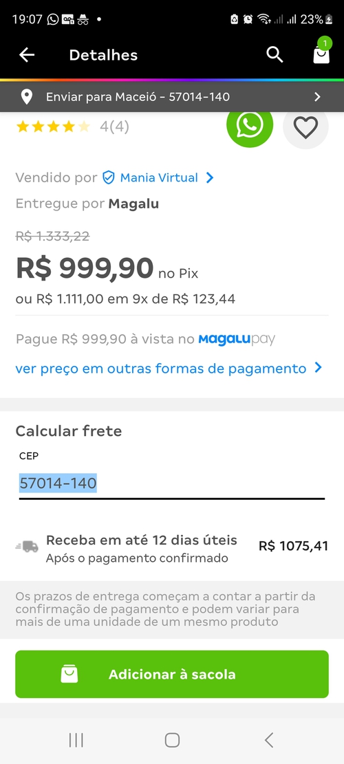 Frete de 1075 reais pra Maceió - AL. Dispenso!