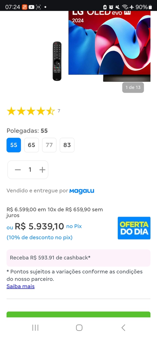 Com o cupom fica por R$ 4.769,10 em até 12 vezes no cartão de crédito.