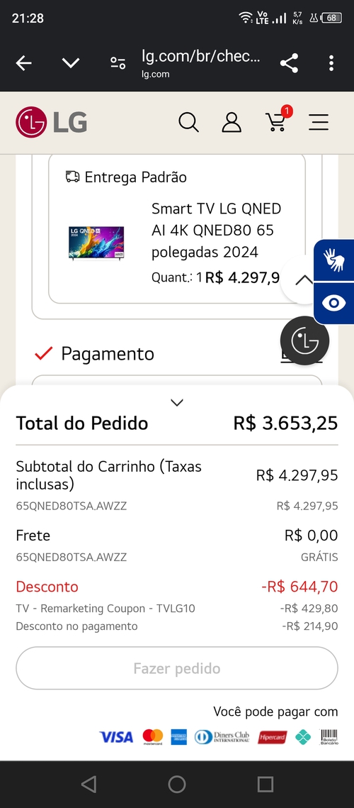 Smart TV LG QNED AI 4K QNED80 65 polegadas 2024