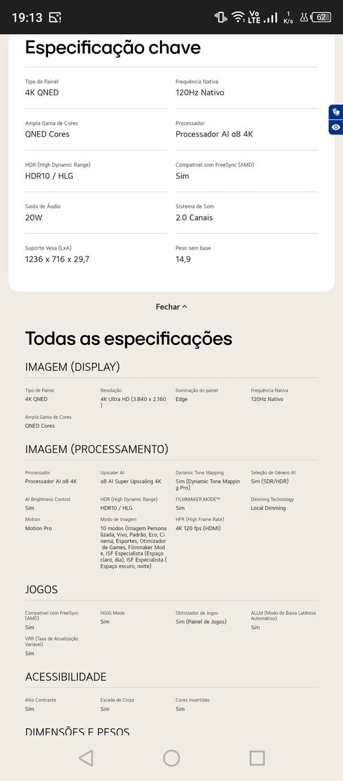 Smart TV LG QNED AI 4K QNED85 55 120hz 2024