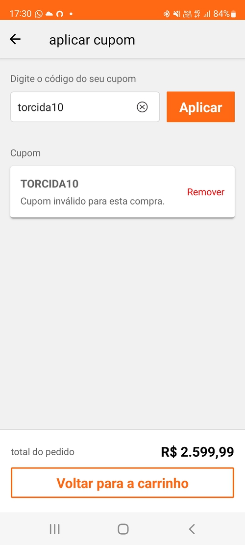 Cupom nao funciona
