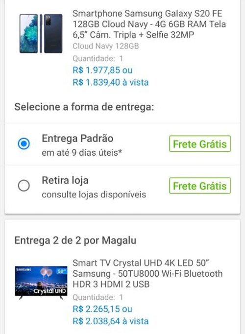 SMART TV SAMSUNG 50TU8000 + SAMSUNG GALAXY S20 FE SNAPDRAGON | R$3878