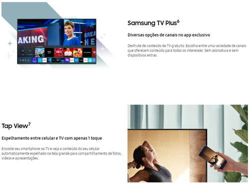 Não recomendo essa linha, tem alguns problemas bem chatos de conexão, vive falhando, mesmo se estiver ao lado do modem e as vezes o Wi-Fi salvo é esquecido do nada. Fora que o Tizen já está ultrapassado nessa TV e alguns apps são lentos.