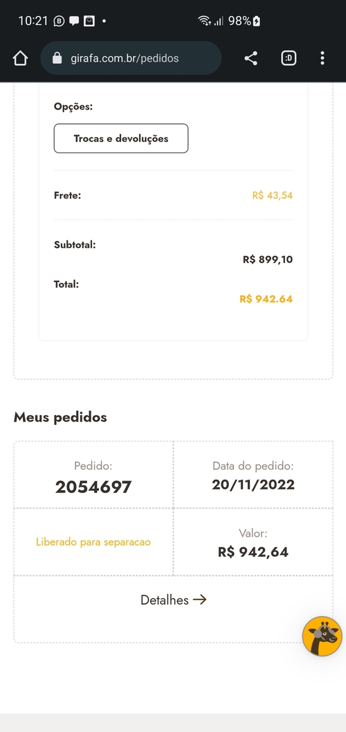Entrei em contato no chat da girafas e falaram que o estorno já está em processamento.Triste fim hahahah