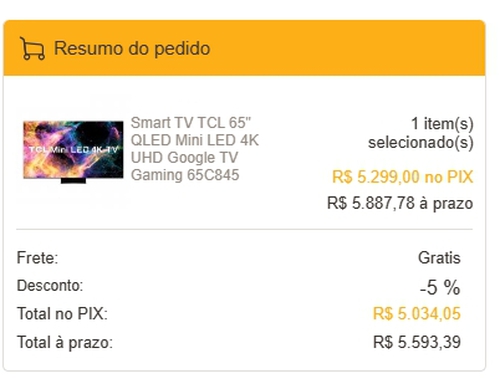 Smart TV TCL 65" QLED Mini LED 4K UHD Google TV Gaming 65C845
