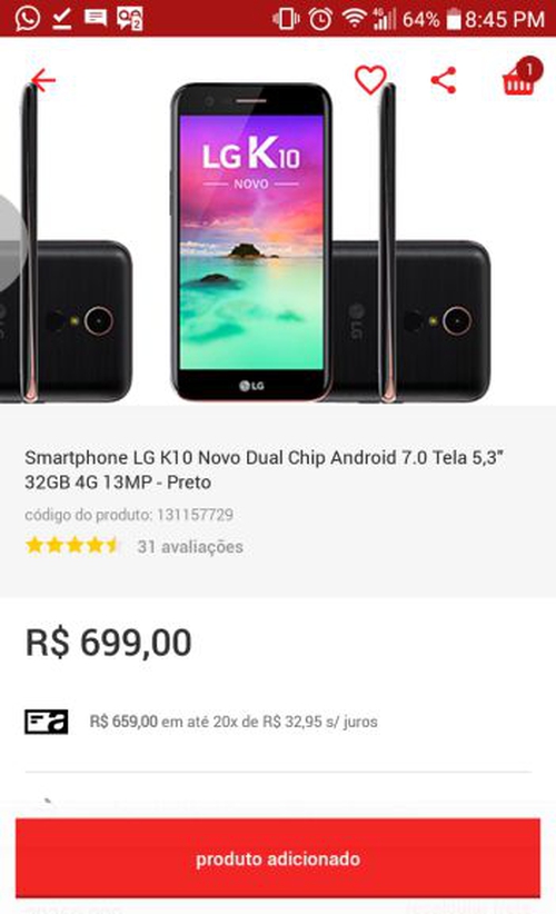 Smartphone LG K10 Novo Dual Chip Android 7.0 - 5,3" 32GB 4G 13MP - Preto - R$ 649,00