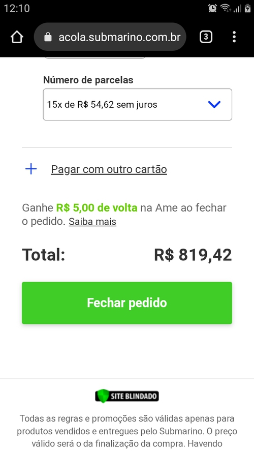 Aqui tá 881,10 dividindo até 8X no cartão.