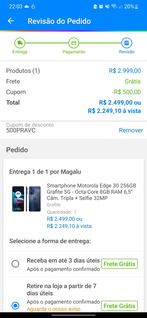 Smartphone Motorola Edge 30 256GB Grafite 5G