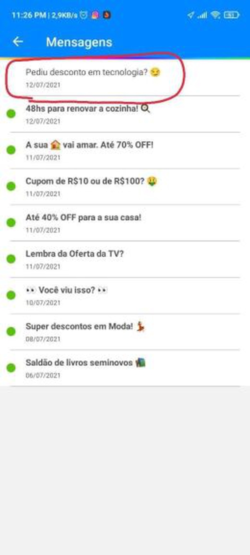 Caso não esteja mostrando esse valor para você, vá em mensagens no app e entre pela notificação