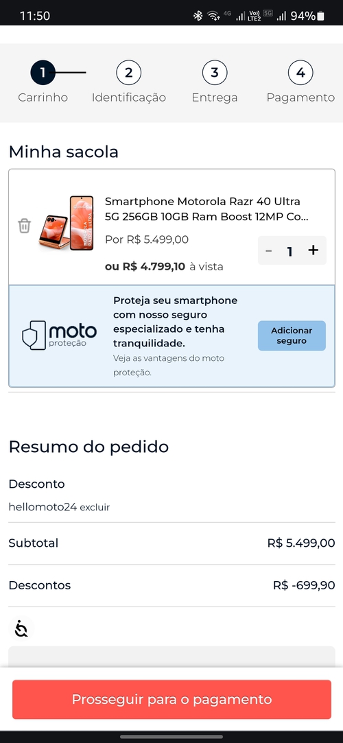 Para primeira compra pode usar o cupomhellomoto24 que dá desconto de mais 150 reais.. mas tem que se cadastrar (pop-up que aparece no site da motorola) e acessar pelo link enviado por e-mail para funcionar. Valor final 2549,10.