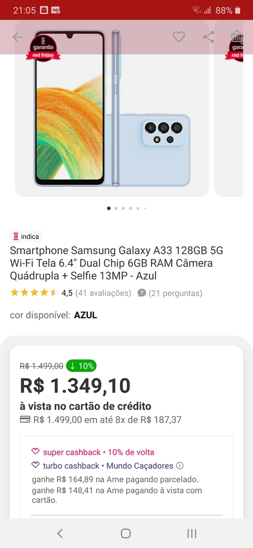 Smartphone Samsung Galaxy A33 128GB 5G Wi-Fi Tela 6.4'' Dual Chip 6GB RAM Câmera Quádrupla + Selfie 13MP - Rosé