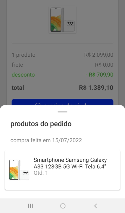Smartphone Samsung Galaxy A33 128GB 5G Wi-Fi Tela 6.4'' Dual Chip 6GB RAM Câmera Quádrupla + Selfie