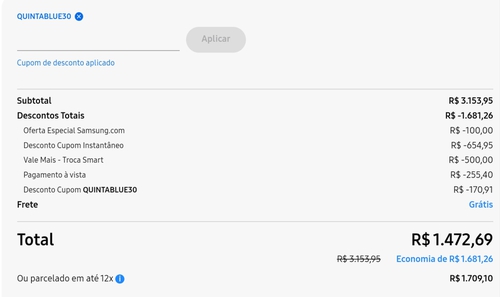 Caso o valor da troca smart não entre, adicione um segundo aparelho.