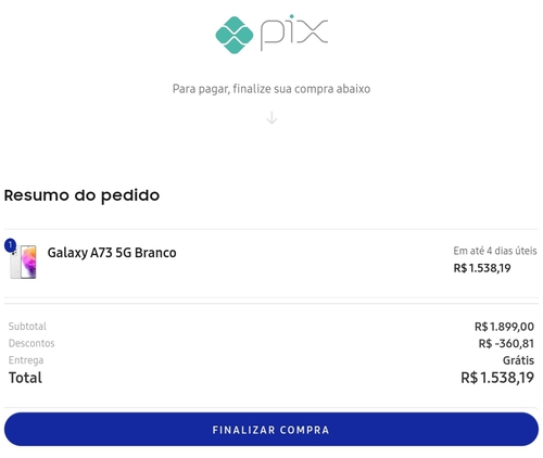 Quanto tempo para aparecer o pagamento via pix na Samsung ?