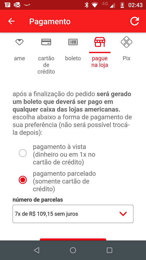 Peguei, gerei um boleto pra pagar na loja da Americanas 764,00