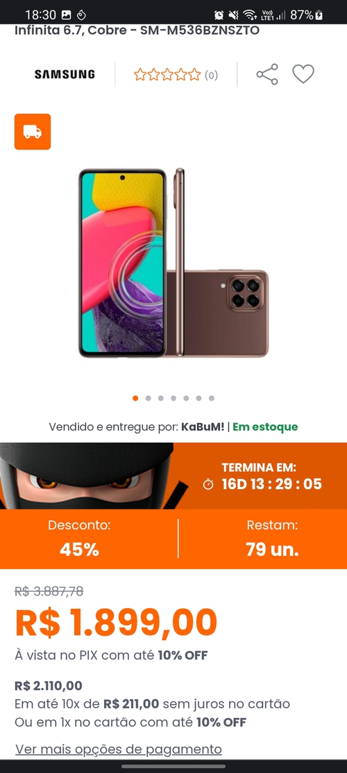 nego se mata pra pegar vários samsung por 1300(sendo que paga real uns 1500 e vem 200 de cashback limitado ao AME) e esse anúncio sem bombar por 1300 kskdkd