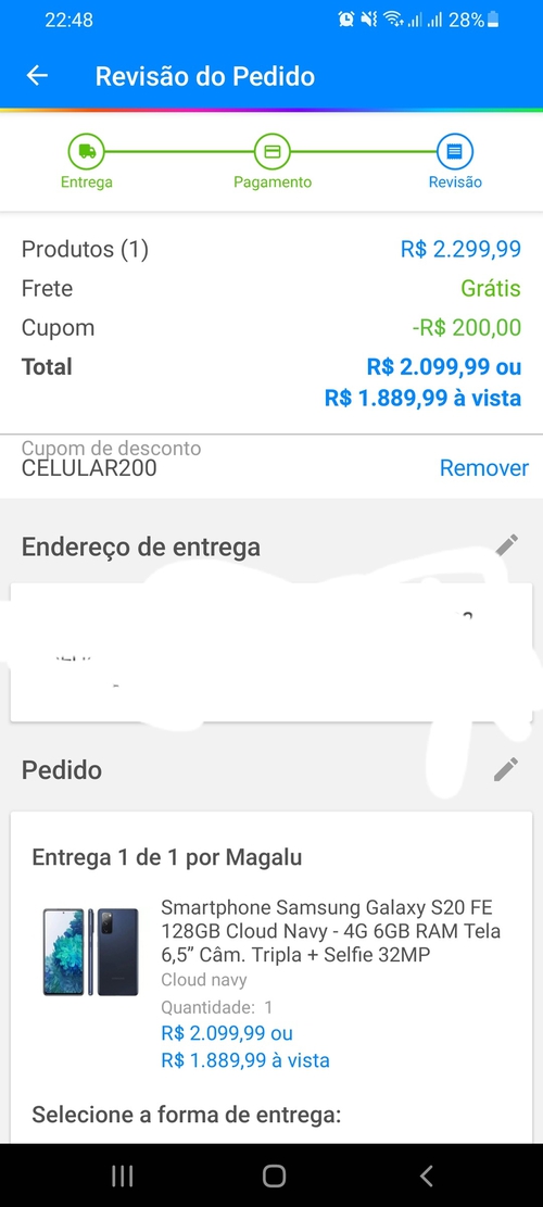 Com o cupom celular200 cai pra 1889,99, se pagar pelo magalupay será 1843,99