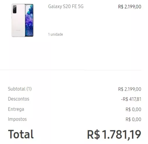 Tomem muito cuidado com essa loja da Samsung.Comprei um S20FE 5G através do Pelando há quase um mês e até hoje não entregam o Smartphone.Cansei de entrar em contato via telefone, chat e email e a Samsung somente ficam pedindo desculpas e desculpas mas o principal que é entregar o que eu comprei e paguei, nada.Outra dica: Antes de comprarem qualquer produto dessa loja Samsung, deem uma olhada no site Reclame Aqui...... Tem um monte de reclamações contra essa loja online e 100% SEM RESPOSTA da Samsung.Samsung faz excelentes produtos mas é incompetente para o comércio e logística.Deem preferência para Lojas Americanas, Magalu, Extra etc.Eu já havia lido aqui no Pelando reclamações de outras pessoas que se fu... mas achei que era exagero.Me dei mal.Será que vale a pena, eu vir alguns vídeos que ele só irá receber atualização de android até o 13, e mais dois anos de atualização de patch de segurança, eu estou precisando troca de celular, porém, quero durar com o celular uns 4/5 anos.