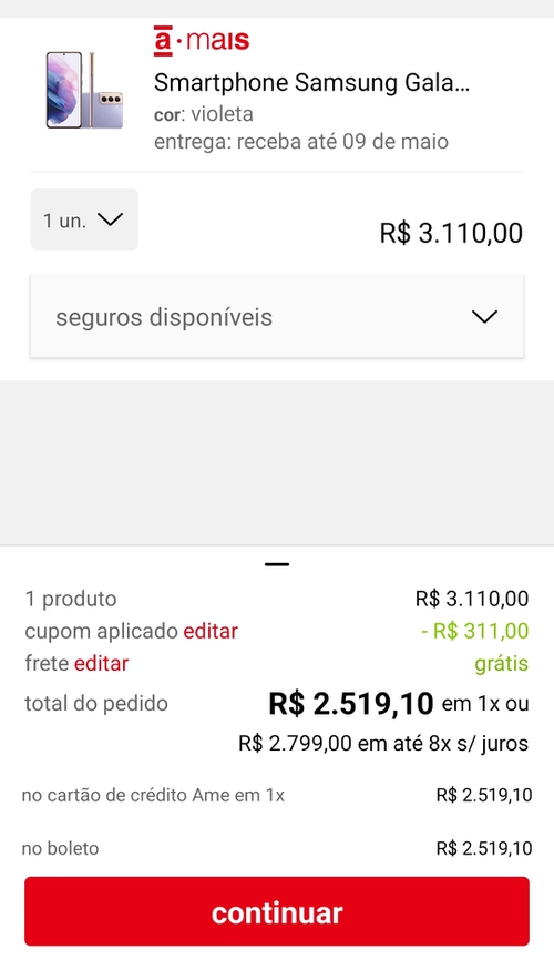 Pra galera do parcelado, como é o meu caso, da para comprar com o AME em até 12x sem juros, o valor de R$ 2.799,00, melhor do q comprar pelas Americanas, q é só em 8x