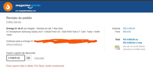 Edit: Pessoal, procurem pelo produto direto pelo APP da Magalu. Lá está funcionando o cupom.