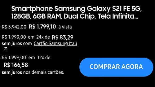 Queria esse preço no de 256GB e parcelado, tô fora de 6/128, sem slot pra micro SD.
