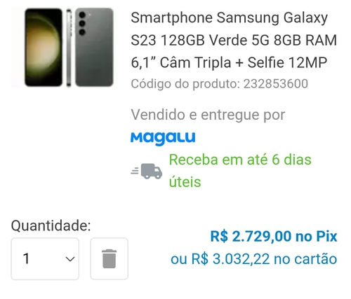 Smartphone Samsung Galaxy S23 128Gb Verde 5G 8Gb Ram 6,1 Câm Tripla +
