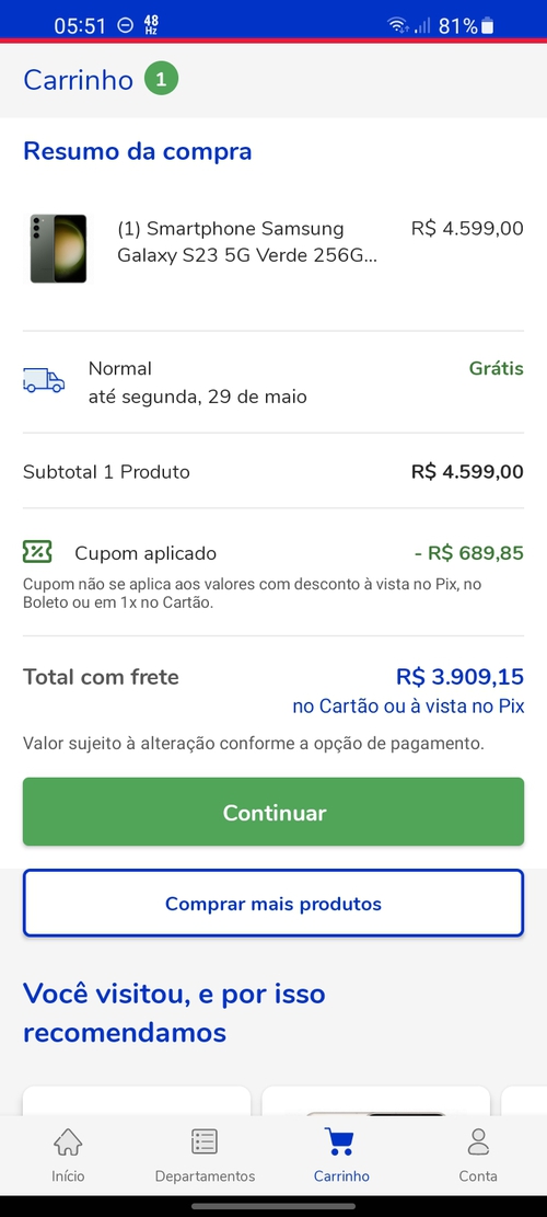 Mercado livre tem um roxo de 512 por menos de 4500 parcelado