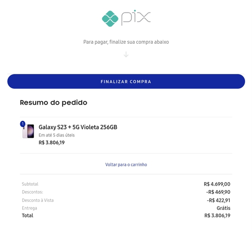 Só é possível chegar a esse valor pelo app do Samsung Menbers encontrado na aba de benefícios e entrar na loja menbers shop para aproveitar à oferta a vista.