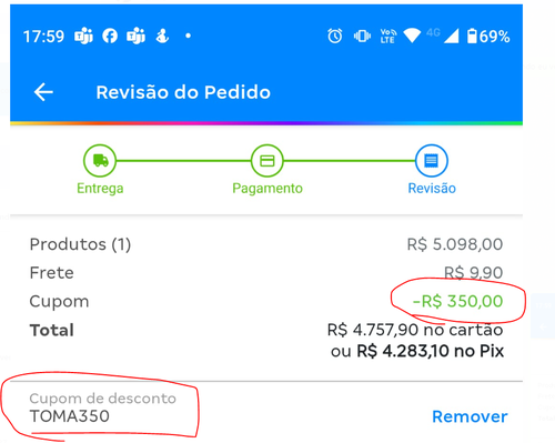 Atenção: Só é possível chegar no valor pelo APLICATIVO DA LOJA