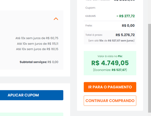 Necessário adicionar o cupom KABUM5 no carrinho. Vale só para pagamento a vista: