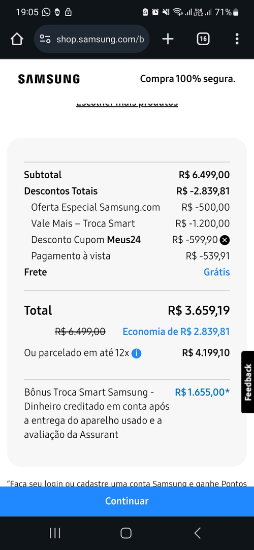Alguém sabe como resolver o problema de não aparecer troca smart? Ou a Samsung já tirou esse desconto?