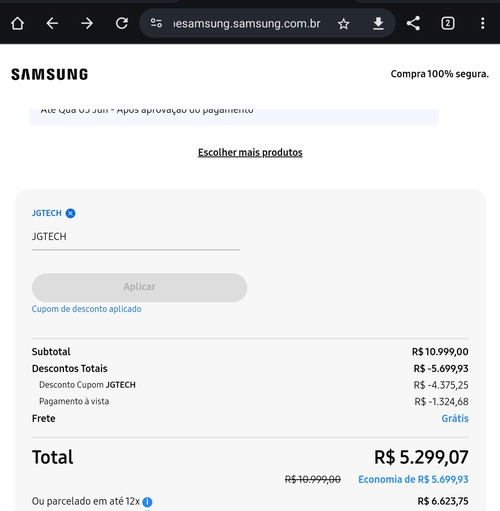 Aqui não deu todo esse desconto não. Só 2199.
