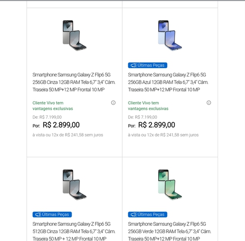 [SELECIONADOS] Samsung Galaxy Z Flip6 5G 256GB Verde 12GB RAM Tela 6,7 3,4 Câm. Traseira 50 MP+12 MP Frontal 10 MP