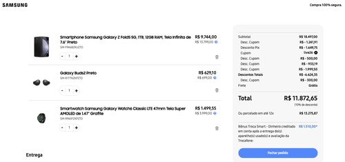 Só é possivel chegar ao valor com o cupom LIVE26 e se fez o cadastro na pré-venda para receber 1.200,00 de desconto um detalhe troca-smart pega modelo s23. Lembrando que comprando na pré-venda o de 512 GB leva o de 1Tb pelo mesmo valor.