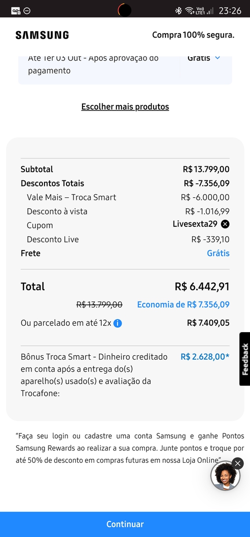 Com meu S23+ 256gb ficou esse valor ainda, mesmo creditando os 2500,00 dps eu teria q dar 4k