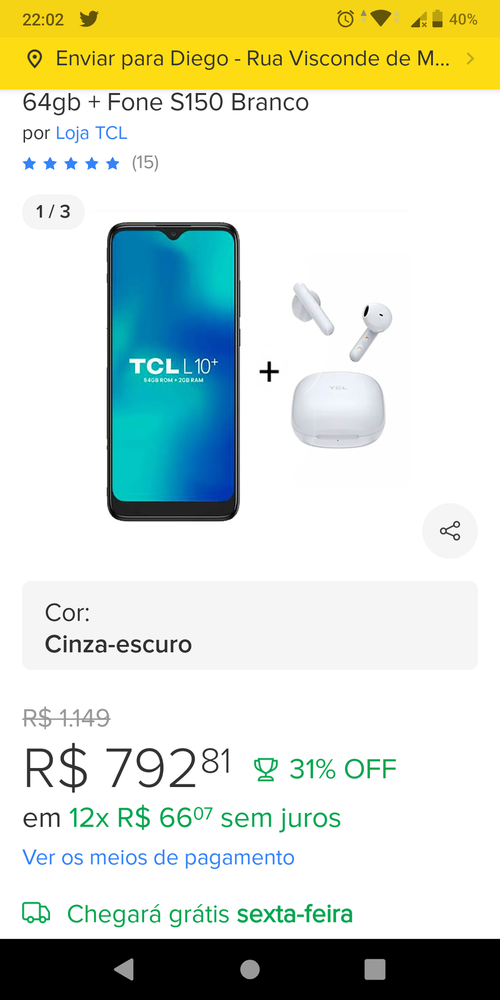 Smartphone Tcl L10 Plus Cinza 6.22'' 64gb + Fone S150 Branco