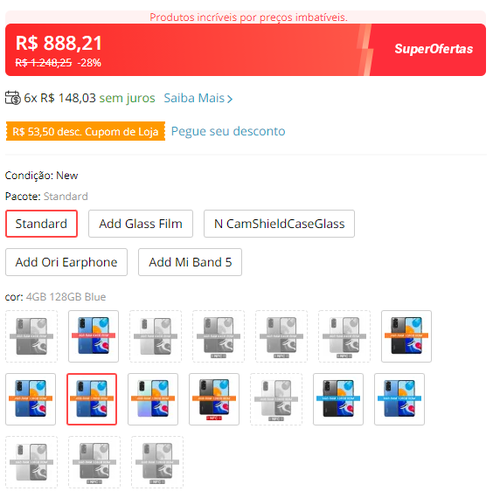 Bom preço. Versão global 4/128GB azul. Preço sem cupom nem nada.