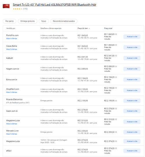 Menor preço segundo o Google Shopping